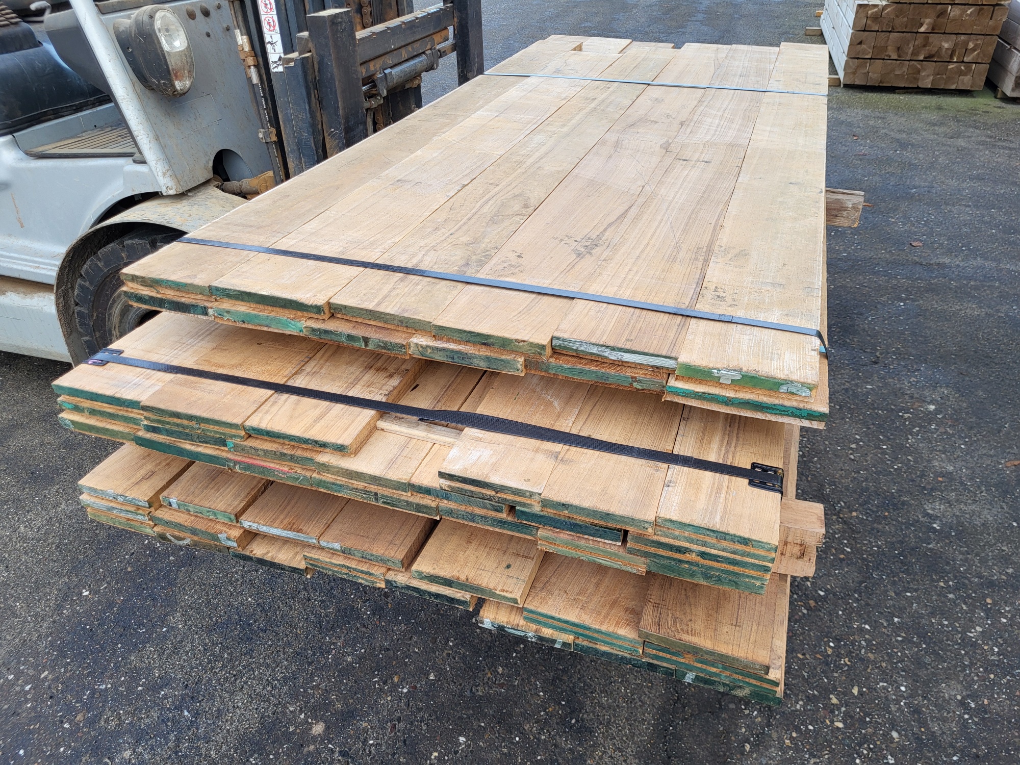 De planken zijn 40mm dik, 29cm breed. Verkrijgbaar in de lengtes: 275cm € 17..